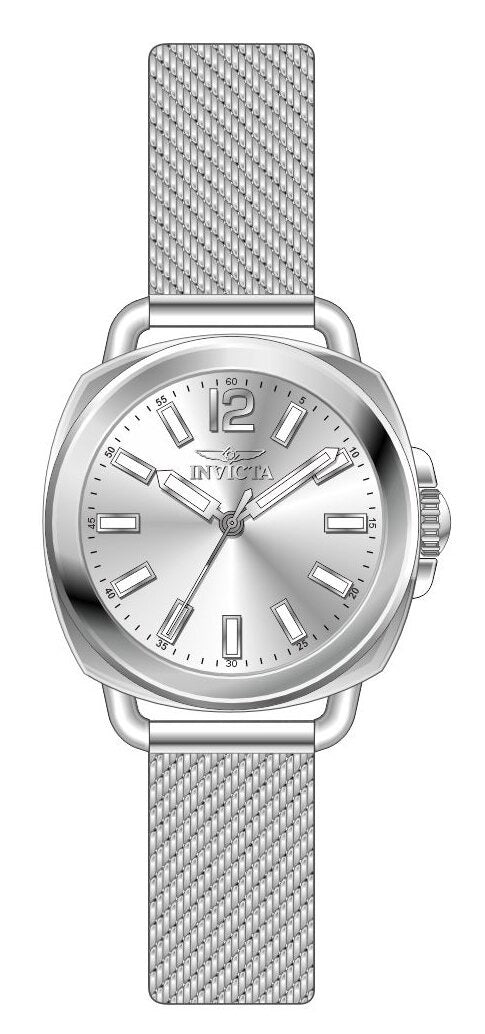 Band Material: Stainless Steel, Band Tone: Steel, Band Width: 14MM, Band Length: 176MM, Crown Type: Push, Case Material: Stainless Steel, Case Tone: Steel, Case Size [mm]: 32, Case Back: Solid, Material of Hands: Brass, Color of Hands: Silver,Luminous, Crystal Type: Flame Fusion, Bezel Material: None, Dial Material: Brass, Dial Color: Silver, Dial Pattern: Sun-ray Finish .Purchasing these parts and having a non-authorized repair center open your watch voids all manufacturing warranties. Invicta cannot guarantee the quality standards of an altered timepiece, the standard 3-year limited warranty on Invicta timepieces shall be invalid if the timepiece is serviced at any time by an unauthorized repair center. This includes battery replacements, which must be done at an Invicta authorized repair center in order to maintain the eligibility of the warranty. Please follow the link below to learn more about Invicta's warranty.https://cdn.invictawatch.com/www/files/invicta-warranty-2018.pdf