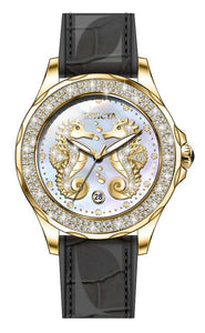 INVICTA Wildflower Lady 38mm Stainless Steel Gold Platinum dial PC32 Quartz , Band Material: Silicone,Leather, Band Tone: Black, Band Size [mm]: 18, Band Length [mm]: 190, Buckle Type: Buckle , Crown Type : Push, Case Material : Stainless Steel, Case Tone : Gold, Case Size (mm) : 38, Case Back : Solid, Material of Hands : Metal, Color of Hands : Gold, Crystal Type : Flame Fusion, Bezel Material : Stainless Steel, Dial Material : Mother of Pearl, Dial Color : Platinum .Purchasing these parts and having a non-authorized repair center open your watch voids all manufacturing warranties. Invicta cannot guarantee the quality standards of an altered timepiece, the standard 3-year limited warranty on Invicta timepieces shall be invalid if the timepiece is serviced at any time by an unauthorized repair center. This includes battery replacements, which must be done at an Invicta authorized repair center in order to maintain the eligibility of the warranty. Please follow the link below to learn more about Invicta's warranty.https://cdn.invictawatch.com/www/files/invicta-warranty-2018.pdf