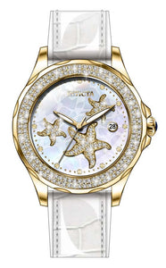 INVICTA Wildflower Lady 38mm Stainless Steel Gold Platinum dial PC32 Quartz , Band Material: Silicone,Leather, Band Tone: White, Band Size [mm]: 18, Band Length [mm]: 190, Buckle Type: Buckle , Crown Type : Push, Case Material : Stainless Steel, Case Tone : Gold, Case Size (mm) : 38, Case Back : Solid, Material of Hands : Metal, Color of Hands : Gold, Crystal Type : Flame Fusion, Bezel Material : Stainless Steel, Dial Material : Mother of Pearl, Dial Color : Platinum .Purchasing these parts and having a non-authorized repair center open your watch voids all manufacturing warranties. Invicta cannot guarantee the quality standards of an altered timepiece, the standard 3-year limited warranty on Invicta timepieces shall be invalid if the timepiece is serviced at any time by an unauthorized repair center. This includes battery replacements, which must be done at an Invicta authorized repair center in order to maintain the eligibility of the warranty. Please follow the link below to learn more about Invicta's warranty.https://cdn.invictawatch.com/www/files/invicta-warranty-2018.pdf