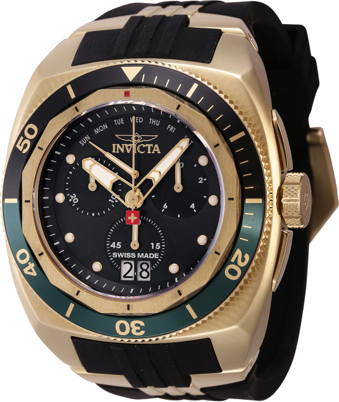 Band Material: Silicone, Stainless Steel, Band Tone: Black, Gold, Band Width: 33MM, Band Length: 210MM, Crown Type: Screw Down, Case Material: Aluminum, Stainless Steel, Case Tone: Silver, Green, Black, Gold, Case Size [mm]: 52.00, Color of Hands: Luminous, Gold, Red, Crystal Type: Sapphire, Bezel Material: Aluminum, Stainless Steel, Dial Material: Metal, Dial Color: Black .Purchasing these parts and having a non-authorized repair center open your watch voids all manufacturing warranties. Invicta cannot guarantee the quality standards of an altered timepiece, the standard 3-year limited warranty on Invicta timepieces shall be invalid if the timepiece is serviced at any time by an unauthorized repair center. This includes battery replacements, which must be done at an Invicta authorized repair center in order to maintain the eligibility of the warranty. Please follow the link below to learn more about Invicta's warranty.https://cdn.invictawatch.com/www/files/invicta-warranty-2018.pdf