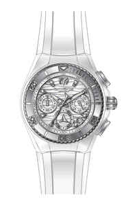 Band Material : Silicone, Band Tone : White, Band Size [mm] : 26, Band Length [mm] : 195, Crown Type : Screw Down, Case Material : Stainless Steel, Case Tone : Steel, Case Size [mm] : 40.57, Case Back : Solid, Material of Hands : Metal, Color of Hands : Luminous,Steel, Crystal Type : Mineral, Bezel Material : Stainless Steel, Dial Material : Metal, Dial Color : Silver, Dial Pattern : Textured .Purchasing these parts and having a non-authorized repair center open your watch voids all manufacturing warranties. Invicta cannot guarantee the quality standards of an altered timepiece, the standard 3-year limited warranty on Invicta timepieces shall be invalid if the timepiece is serviced at any time by an unauthorized repair center. This includes battery replacements, which must be done at an Invicta authorized repair center in order to maintain the eligibility of the warranty. Please follow the link below to learn more about Invicta's warranty.https://cdn.invictawatch.com/www/files/invicta-warranty-2018.pdf