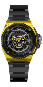 Band Material: Stainless Steel, Band Tone: Black, Band Width: 26.2MM, Band Length: 170.33MM, Crown Type: Push, Case Material: Stainless Steel,Carbon Fiber, Case Tone: Black,Yellow, Case Size [mm]: 45.00, Case Back: Exhibition, Material of Hands: Metal, Color of Hands: Gunmetal, Crystal Type: Sapphire, Bezel Material: Stainless Steel, Dial Material: Skeleton, Dial Color: Black .Purchasing these parts and having a non-authorized repair center open your watch voids all manufacturing warranties. Invicta cannot guarantee the quality standards of an altered timepiece, the standard 3-year limited warranty on Invicta timepieces shall be invalid if the timepiece is serviced at any time by an unauthorized repair center. This includes battery replacements, which must be done at an Invicta authorized repair center in order to maintain the eligibility of the warranty. Please follow the link below to learn more about Invicta's warranty.https://cdn.invictawatch.com/www/files/invicta-warranty-2018.pdf