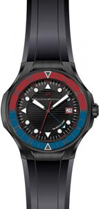 , Crown Type Push, Case Material Stainless Steel, Case Tone Black, Case Size (mm) 45, Case Back Solid, Material of Hands Metal, Color of Hands Red, Black, Blue, Crystal Type Flame Fusion, Bezel Material Stainless Steel, Dial Material Metal, Dial Color Black, Dial Pattern Textured
