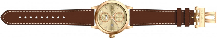 Band Material: Leather, Band Tone: Brown, Rose Gold Buckle, Band Size: 22mm, Band Length: 223 mm, Buckle Type: Butterfly , Clasp Type: Butterfly