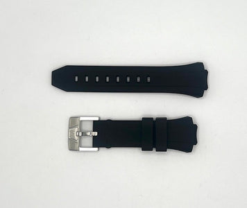 Band Material: Silicone, Band Tone: White, Band Size: 26mm, Band Length: 195mm, Clasp Type: Buckle, Clasp Tone: Stainless Steel Please note that bands do not ship with spring bars or T bars. If you need these parts, please add them to your cart with the corresponding part sku.