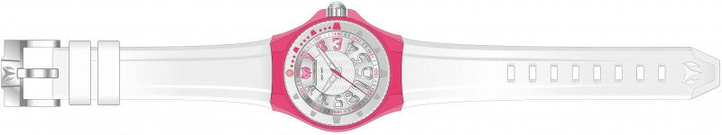 Band Material: Silicone, Band Tone: White, Band Size: 26mm, Band Length: 180mm, Clasp Type: Regular, Clasp Tone: Stainless Steel Please note that bands do not ship with spring bars or T bars. If you need these parts, please add them to your cart with the corresponding part sku.